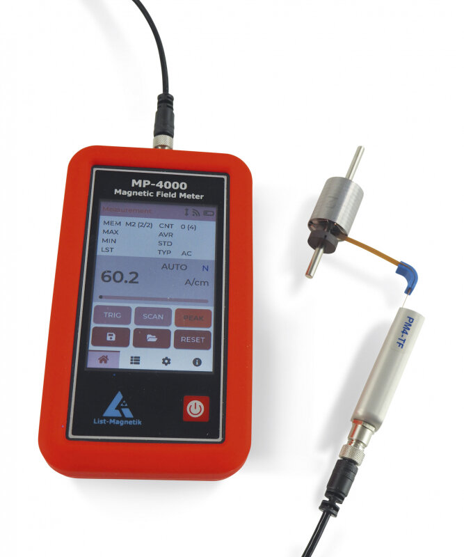 Das Gaussmeter MP-4000 verfügt über ein grafisches LCD-Touchpanel mit innovativer Benutzerführung und einer Auflösung von 320x480 Pixeln. Eine herausragende Eigenschaft der neuen Sondenelektronik ist die schnelle Digitalisierung der Messwerte mit einer Frequenz von bis zu 200 kHz.